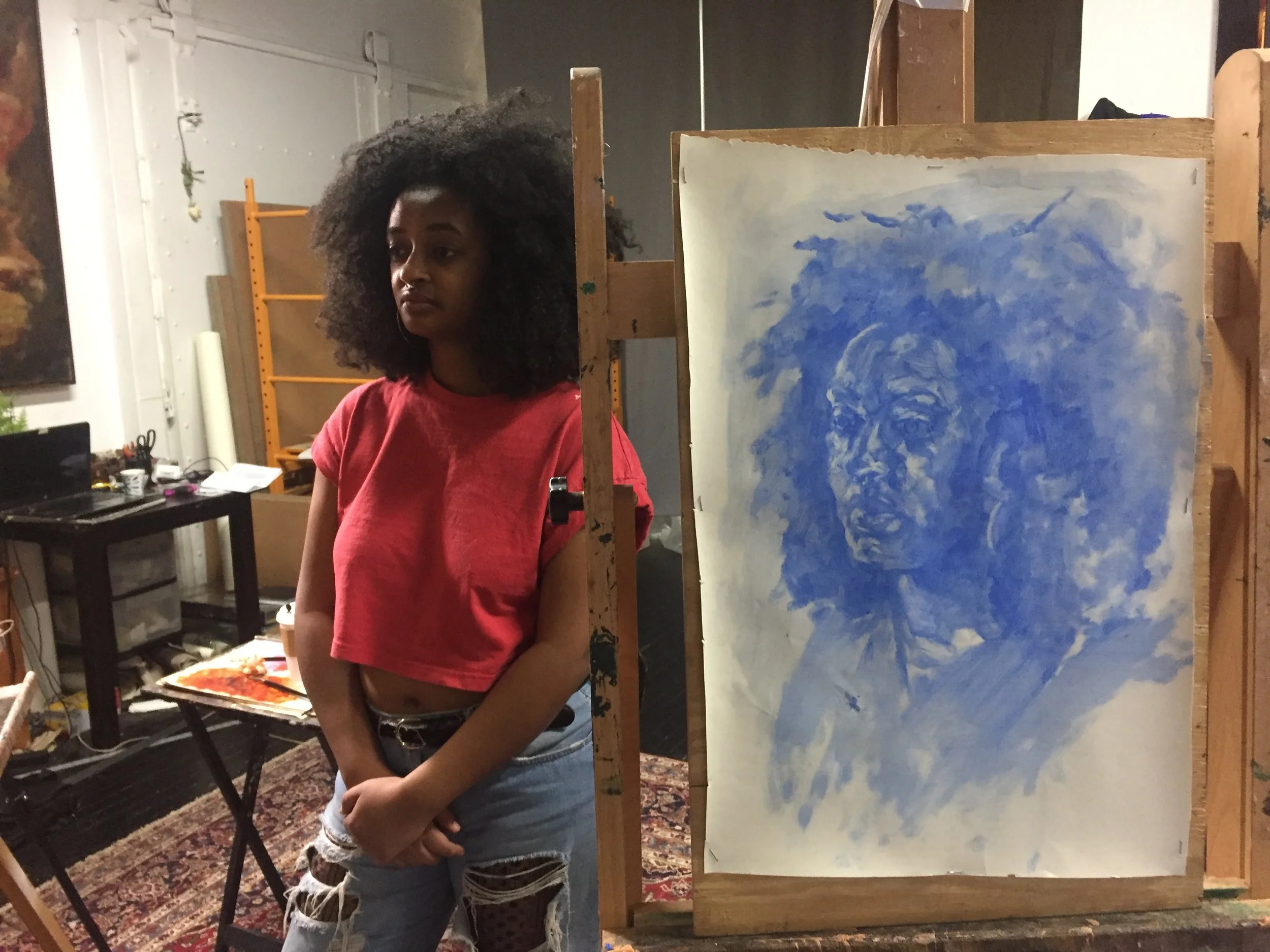 This blue study of Eden was painted from life, in my studio in 2018. Eden was a friend who took an interest in painting, so we used this portrait as a demonstration of technique.